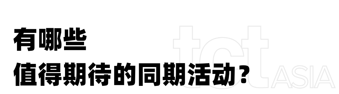 本届展会将吸引国内外400家展商参与,总展览面积40,000平方米,汇集了包括“TCT亚洲峰会”、“科技讲台”等涵盖行业新品首发、重大研究突破、终端用户应用案例、多维度市场分析与预测等60+场同期活动,创历史规模之最!继续整合TCT品牌在行业资源和专业知识等方面的优势,洞悉趋势,持续改进,共同拓展增材制造、3D打印在亚洲市场的业务。