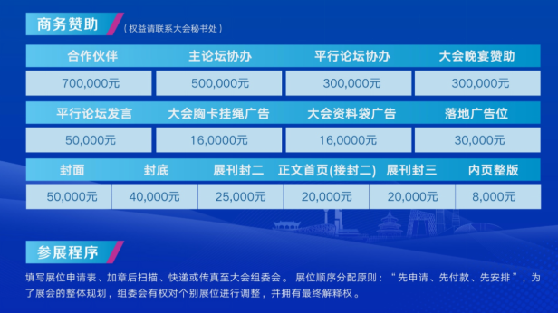 (每9平米展位含有1个参会名额,可免注册费参加会议活动)
