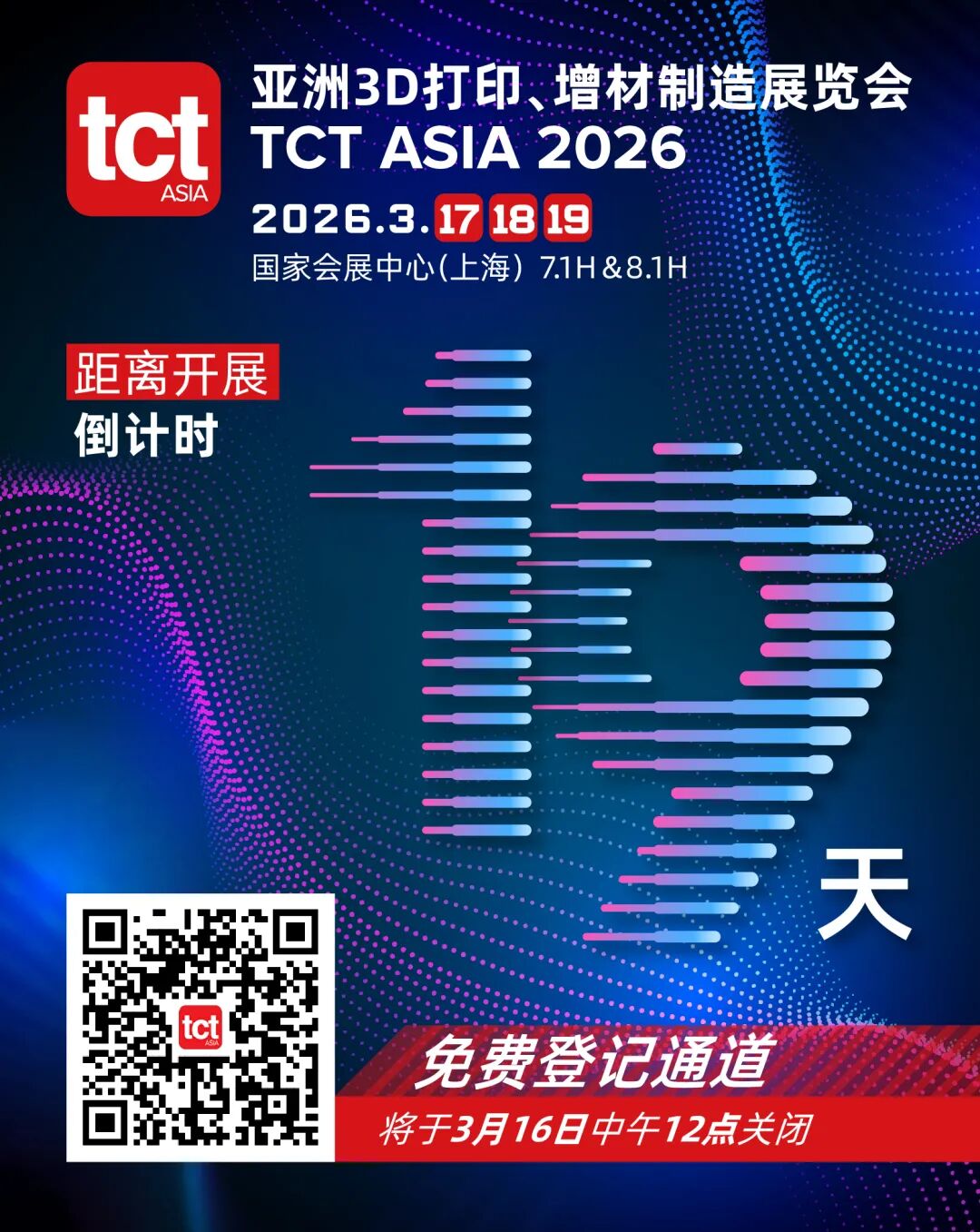 立即锁定2026年3月17-19日的日程,走进国家会展中心(上海)7.1&8.1馆,亲自体验TCT亚洲展带来的全新增材制造世界!