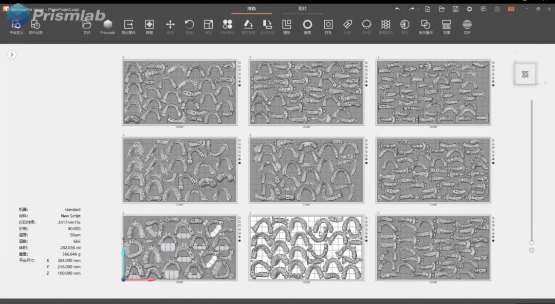 普利生为解决义齿加工厂日常应用中齿科模型打印前处理流程复杂、排版耗时长等痛点,升级了“一键自动化”功能。批量导入模型后,自动修复、自动分组、自动排版(可按订单分组)、自动优化结构。有效节约了模型前处理环节中人力时间成本的投入,在简化流程的同时助力人才价值实现转型升级。
