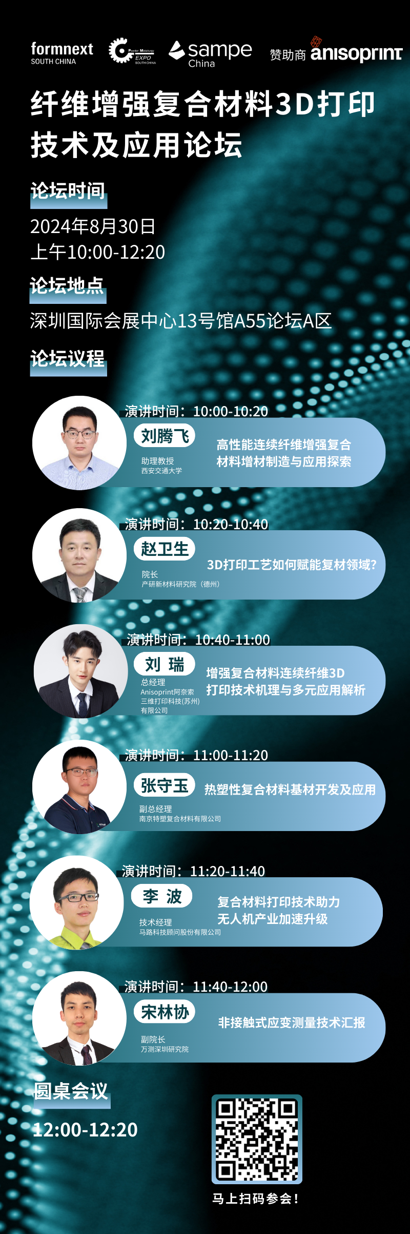 11:20-11:40 | 复合材料打印技术助力无人机产业加速升级 | 李波 技术经理,马路科技顾问股份有限公司 |