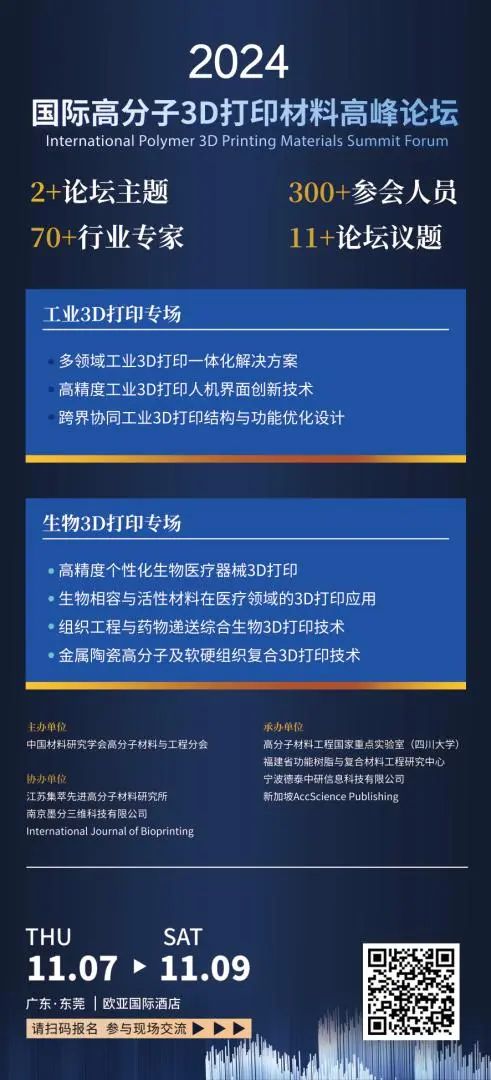 热烈欢迎各位专家、学者以及3D产业从业人员踊跃投稿进行技术交流分享,为我国3D产业高分子领域的发展进言献策。请于2024年10月31日前将海报摘要发至liwei@polydt.com。