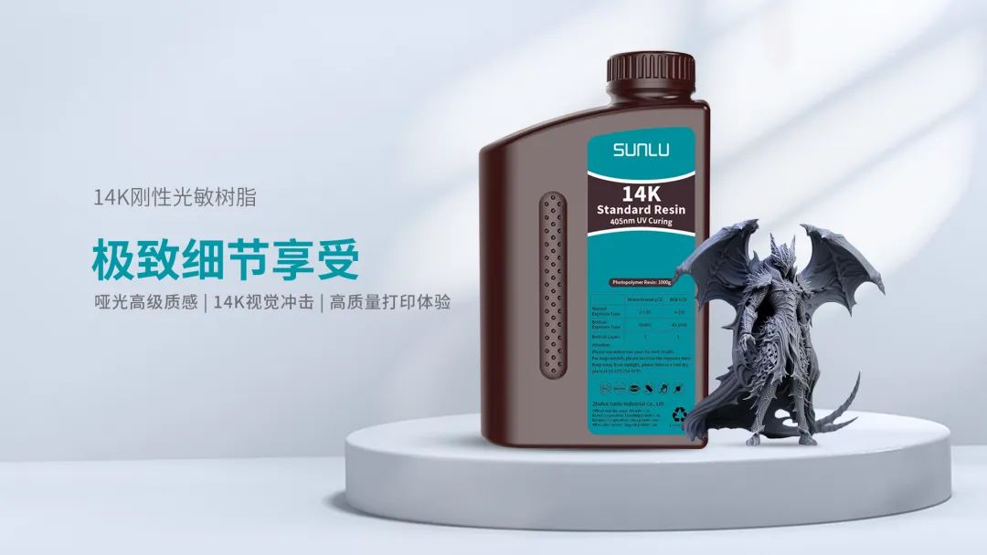 14K刚性光敏树脂:其拥有卓越的14K高精度和哑光质感,同时流动性好收缩率低,是打印细节丰富、高质感模型的优选。