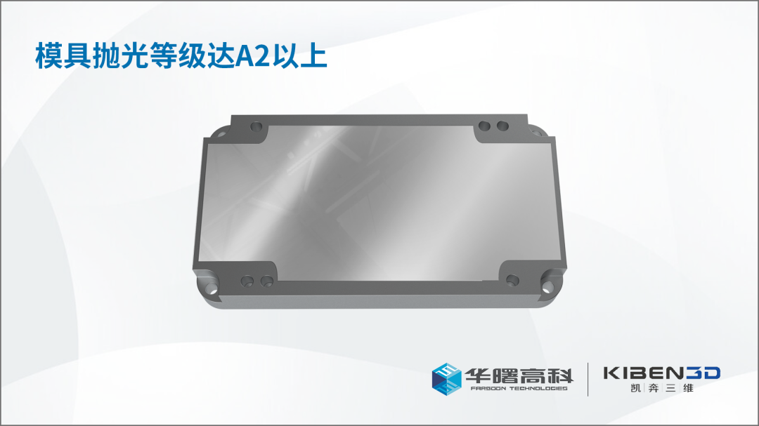 凯奔三维张总介绍,金属3D打印可助力大部分注塑、压铸模具快速冷却优化,但从成本和时间上考虑,模具整体打印尚不适合,更适合金属3D打印技术的是部分镶件、模仁,比如浇口套、斜顶、模仁垫板、后模镶件、前模镶件、滑块等。与此同时,注塑量大、结构复杂、多深筋位、尺寸/平面度要求高的产品,都可以优先考虑3D打印。一些存在注塑品质问题的模具,比如浇口烫伤、拉丝、太阳圈、困气等现象,也可以通过3D打印技术来改善。金属3D打印的模具工件是开粗件,一般需要进行二次精加工。初始打印的尺寸精度为±0.2mm,表面粗糙度为Ra8-12,通常打印时会预留0.8mm余量以便做二次精加工,精加工方法和传统模具钢无差别。02模具抛光等级达A2以上