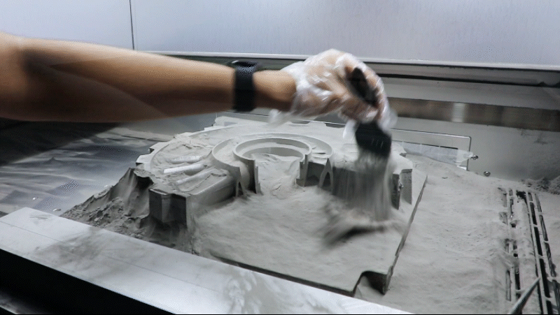 打印完成后,需要操作人员用毛刷将零件周边的粉末集中处理,人工操作效率低,对环境有一定的污染。剩余的粉末需要过筛才能重复利用,在筛粉过程中工作人员劳动强度大,同时筛粉过程中需要保证金属粉末处于保护气氛中,工作效率低。![]()