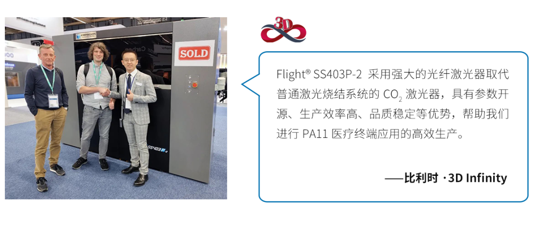 截止目前,包含Flight® 403P系列在内的华曙高科400尺寸SLS高分子3D打印设备,在全球装机量已超270台。华曙高科全球众多生产型用户正采用稳定成熟的光纤激光解决方案,实现高品质终端件的高效生产。![]()