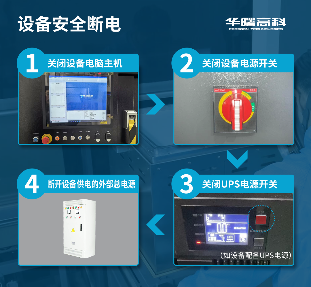 如设备配备UPS电源,关闭UPS电源开关。