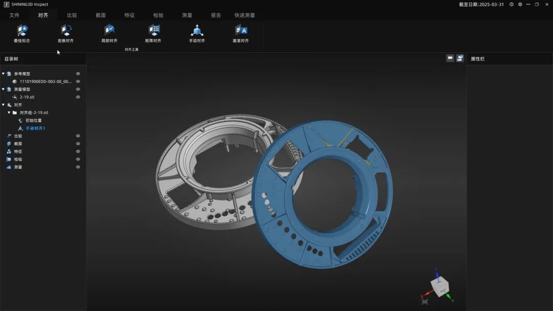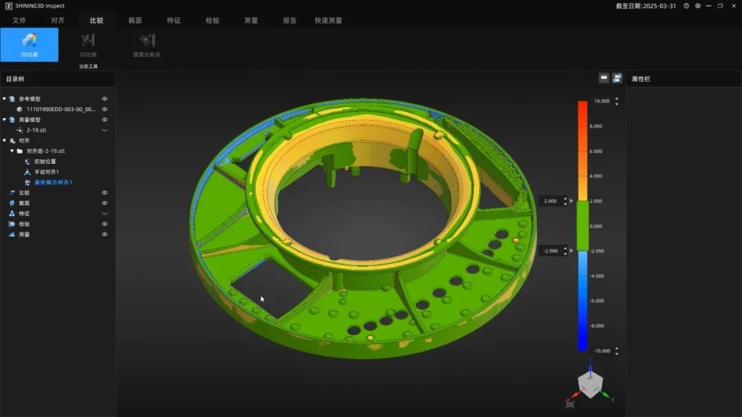 获取完整三维数据后,将其导入至专业检测软件,并依据加工中心的方式进行基准对齐,通过扫描数据与CAD数据的拟合,查看凸台是否偏移,以此在铸件出厂前即可快速得知后续加工能否顺利,提升产品质量把控能力。