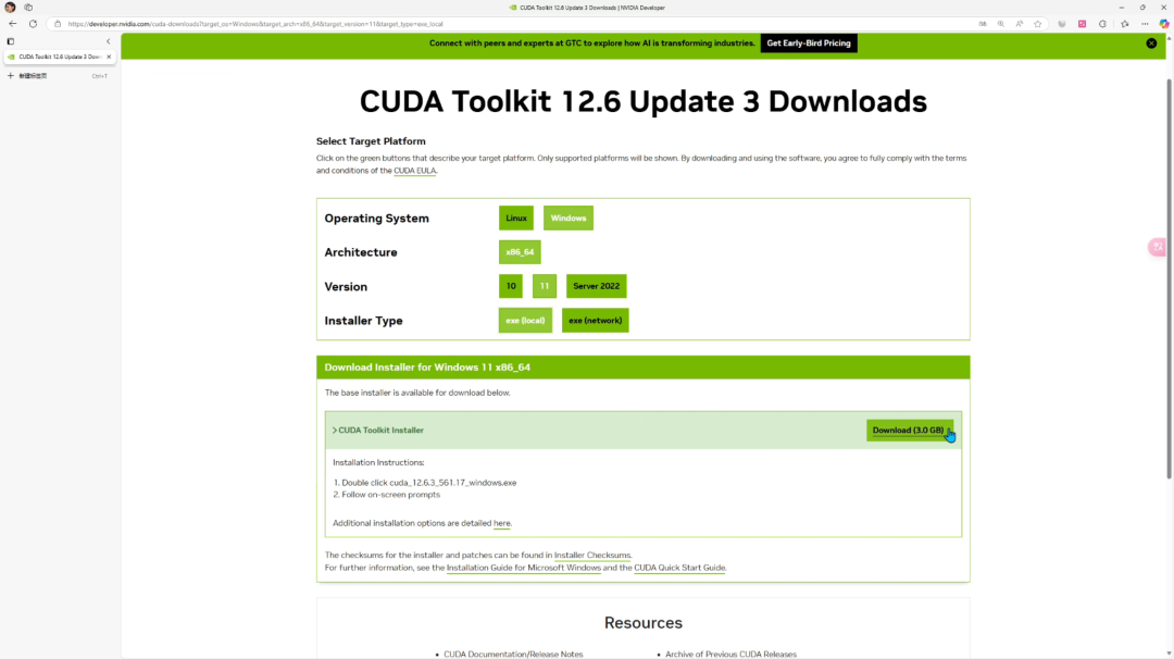 选择适用于Windows/Linux 系统的CUDA版本进行下载。