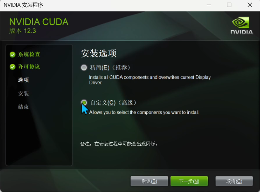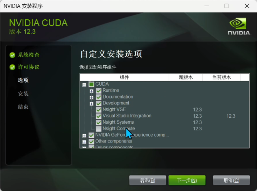 并且取消勾选CUDA组件中的Nsight Compute,完成后续流程即可完成安装。