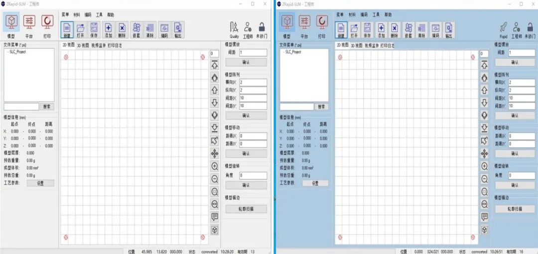 设备控制系统软件可以快速切换质量模式和快速模式,实现一机两用;同时系统提供多种材料参数包,自定义工艺参数和程序,满足不同用户生产制造需求。