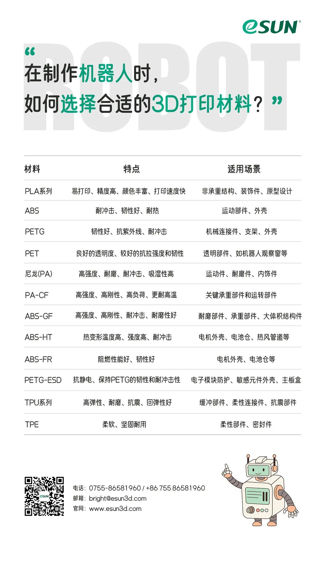 3D打印技术为机器人的设计生产和性能优化提供了非常便利的通道,丰富的3D打印材料则为大家的创作提供了稳健的保障。