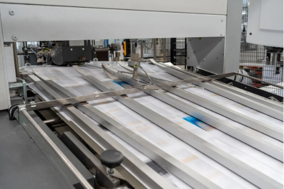 作为一款高效的拾放机器人系统,P-Stacker 是该工厂配备最多 3D 打印部件的机器。它能够有效地从折叠机中取出成捆的折叠纸张,并将其放置在托盘上。