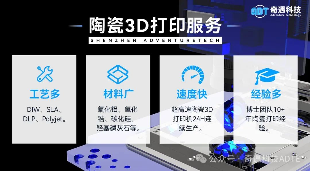 奇遇科技携新研发设备,超高速桌面级陶瓷3D打印机ADT-3D-ZM-Ceramic-96-50和打印陶瓷样品亮相展会。![]()