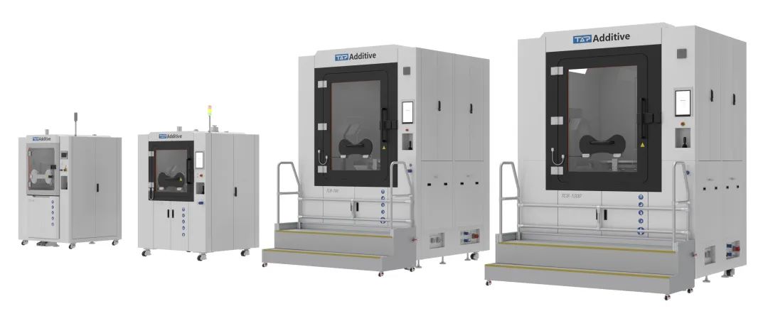 拓博增材清粉系统根据可处理工件尺寸进行设计,先后推出了TCB-100、TCB-300、TCB-700、TCB-1000等产品,目前最大可处理850mm×850mm×1200mm尺寸的零件,更大尺寸需求可以实现专机定制。
