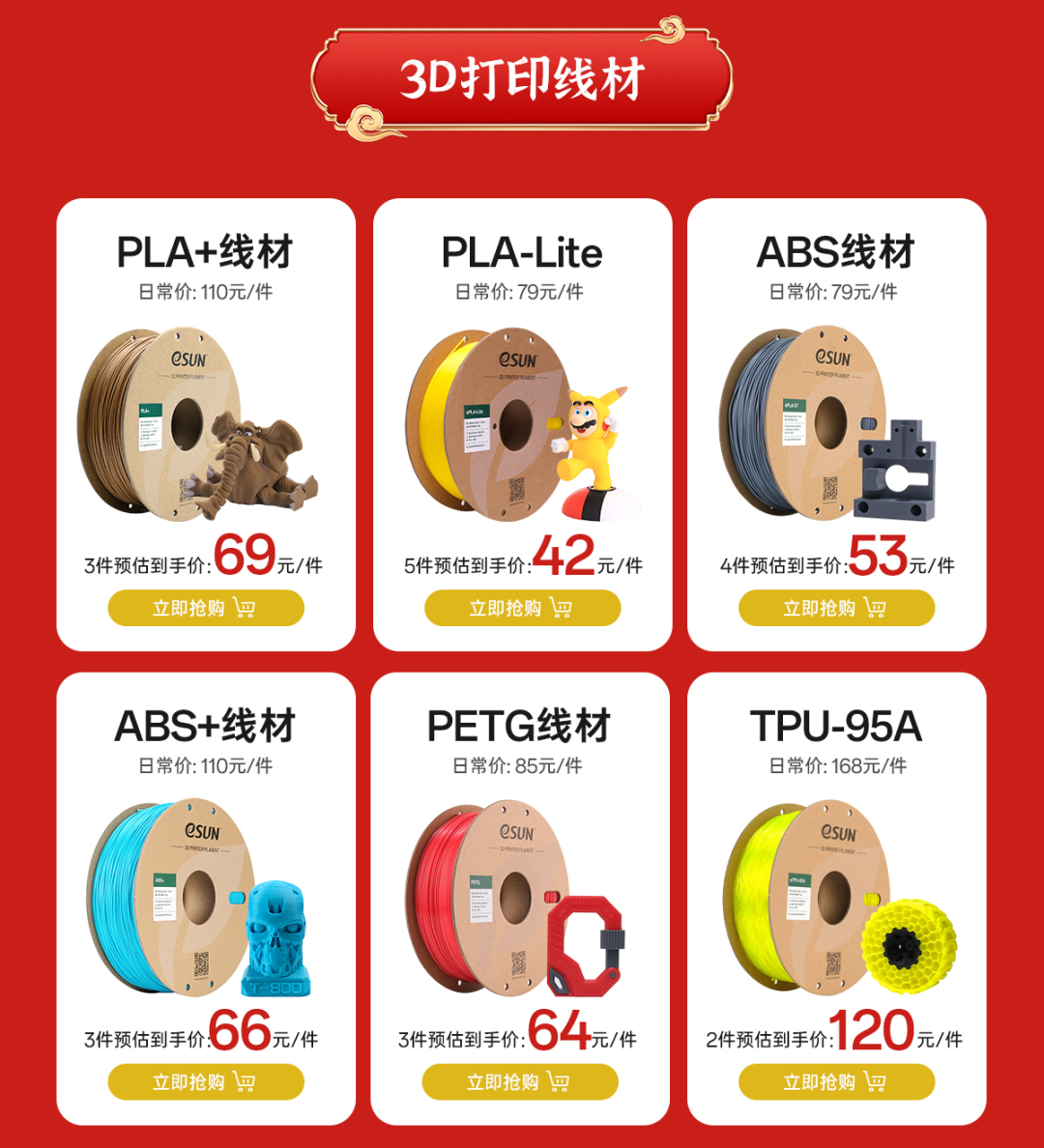 热销线材单笔订单满6件赠送2kg PLA+