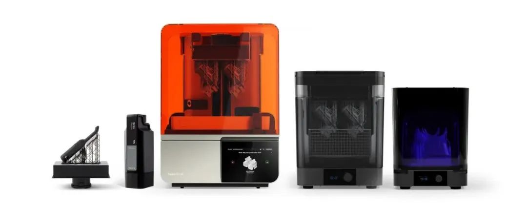 Form 4 生态圈包括 Form Wash 和 Form Cure ,以及构建板和自动分配树脂盒。测试 Form 4 时,使用了 Grey Resin V4。