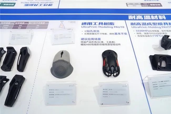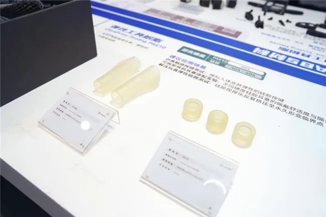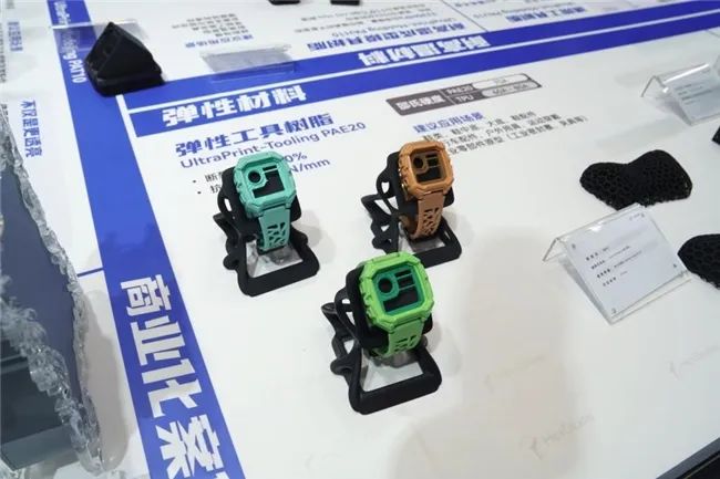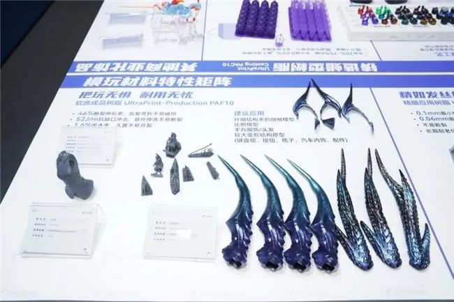 此次展会不仅是黑格科技展示高性能材料的舞台,更是其新材料UltraPrint-Production PAF10的上市节点。PAF10是一款软质成品树脂,46%断裂伸长率,反复弯折不易破损,52J/m缺口抗冲击,意外摔落不易断裂,1.6%吸水率,久置不易开裂,非常适用于“纤细结构多的微缩模型、比例模型、手办服饰/头发、较大变形结构原型、(键盘帽、按钮、瓶子、汽车内饰、配件)等应用。该款材料的推出标志着黑格科技在材料研发领域的又一重大突破,进一步丰富了其3D打印材料矩阵,为用户提供了更多选择。