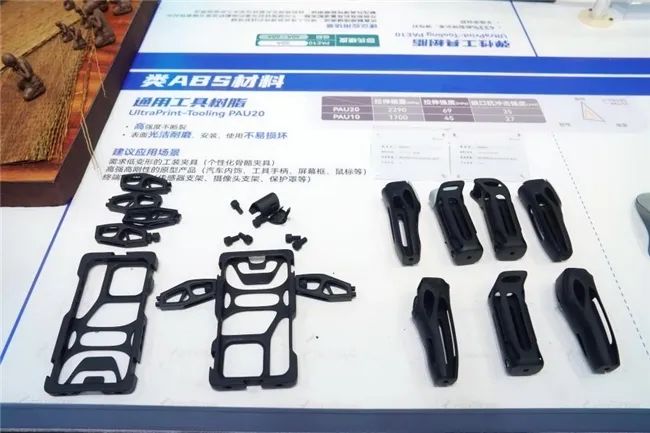 高强高韧通用工具树脂PAU20,这款材料的特点是高强度不断裂,表面光洁耐磨,安装、使用不易损坏。建议应用场景为需求低变形的工装夹具(个性化骨骼夹具)、高强高刚性的原型产品(汽车内饰、工具手柄、屏幕框、鼠标等)、终端结构件(传感器支架、摄像头支架、保护罩等)。