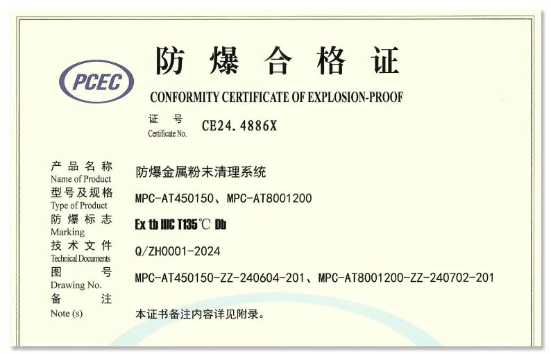 20多项安全设计构筑形成全维安全防护系统,真正确保“人身、产品、粉末”三重安心。通过PCEC防爆认证、 欧盟电气CE认证等多项权威认证。