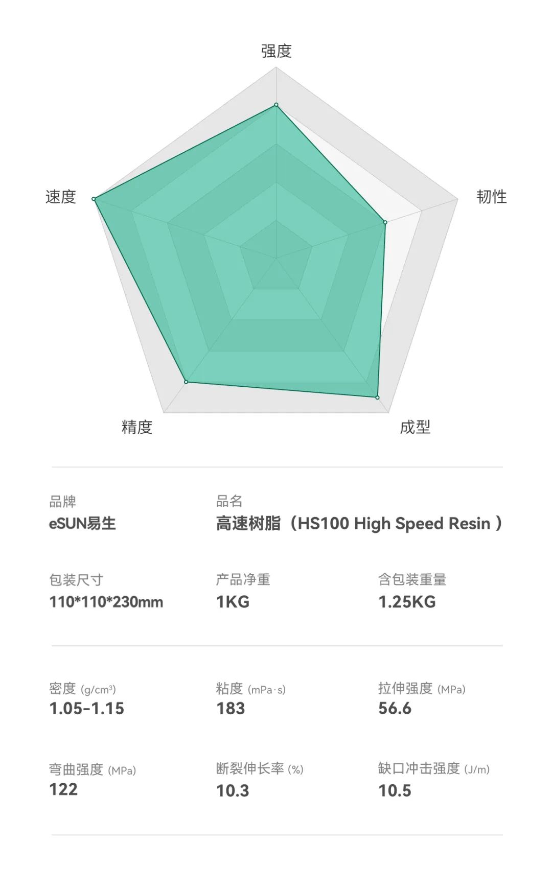 当然,除了打印速度的大幅提升,eSUN易生高速树脂还具有其他特点: