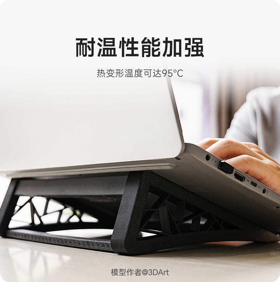但需要注意的是,eABS-CF材料收缩率较大,打印时应注意保温,在封闭箱体的打印机中打印。建议大家在打印过程持续通风,如果条件允许,可配合空气过滤器一起使用。