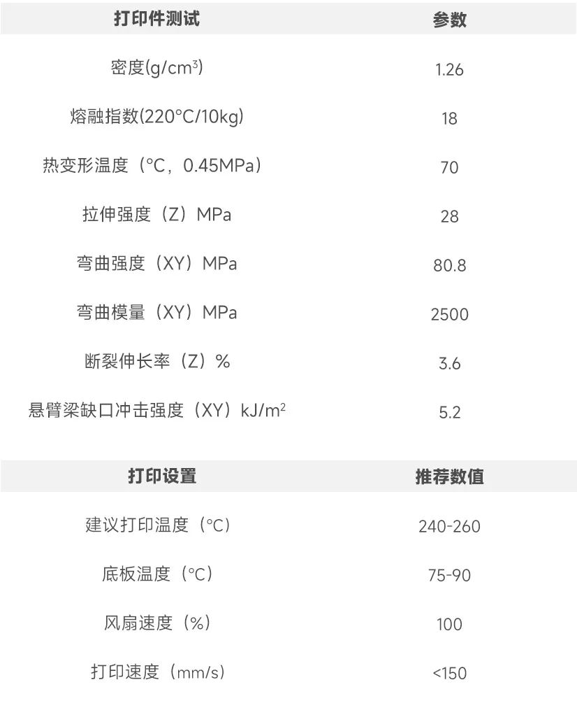 温馨提示,碳纤维材料对打印机喷头的磨损相对更大,在打印碳纤维材料时,建议使用硬化刚喷嘴。此外,材料要注意防潮,建议可在打印前进行烘干处理,干燥温度65℃,干燥时间≥8小时。