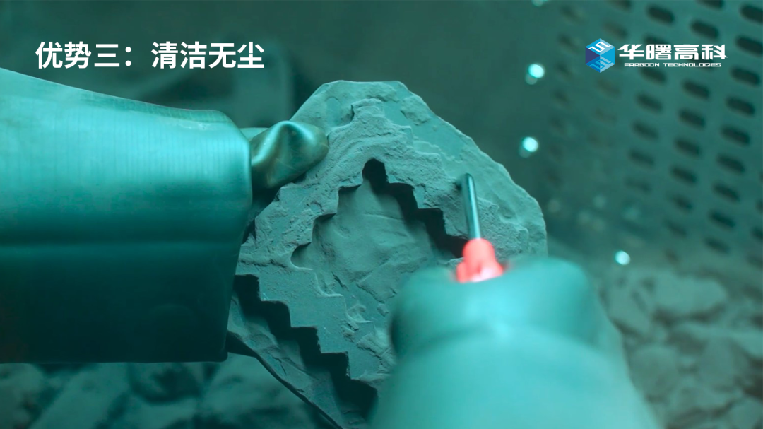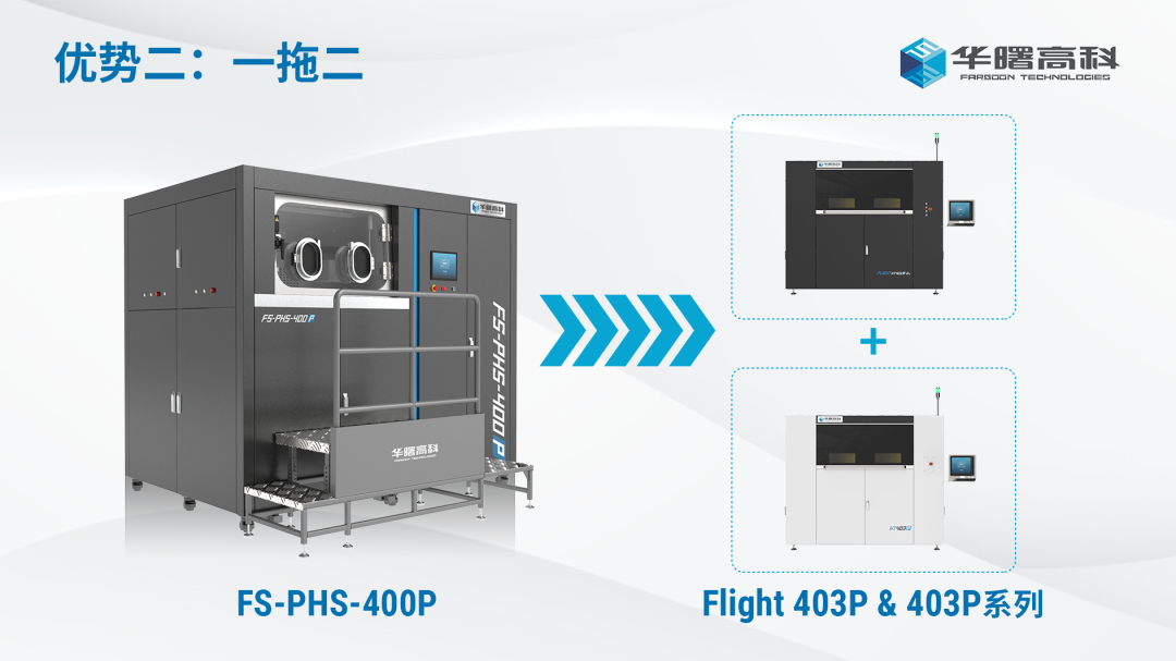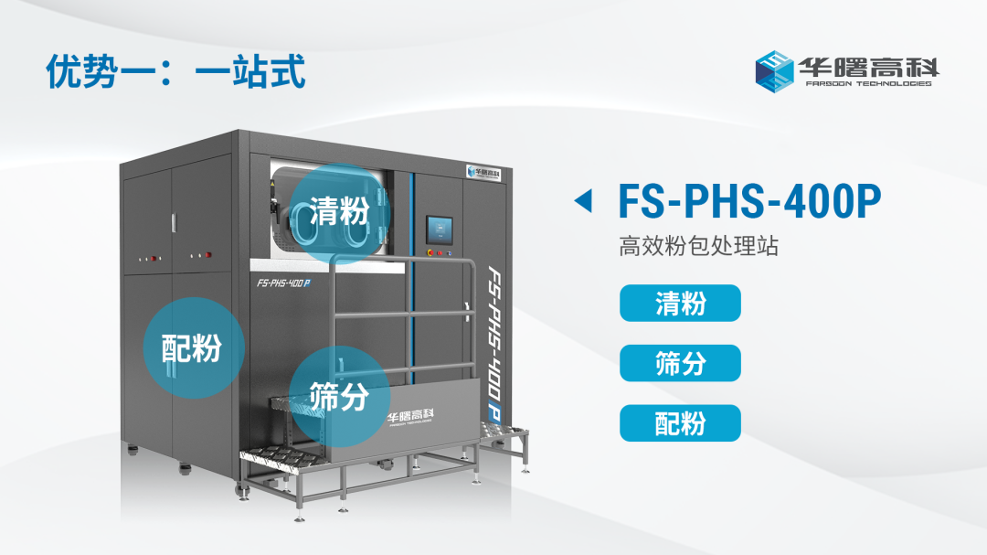 FS-PHS-400P具有一站式、一拖二、清洁无尘三大优势。它布局紧凑,与设备供粉系统模块高度集成,一台FS-PHS-400P可匹配二台华曙400尺寸SLS设备的粉末后处理环节;配备全封闭清粉工位,粉尘100%进入循环,在负压环境下密闭清粉,有效实现人粉隔离,打造安全无尘生产环境。