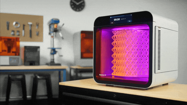 标准树脂二次固化仅需 60 秒,多数工程树脂不到 15 分钟即可完成。此外,预热至 60°C 仅需 150 秒 。高级用户可根据需求调整时间和温度设置。